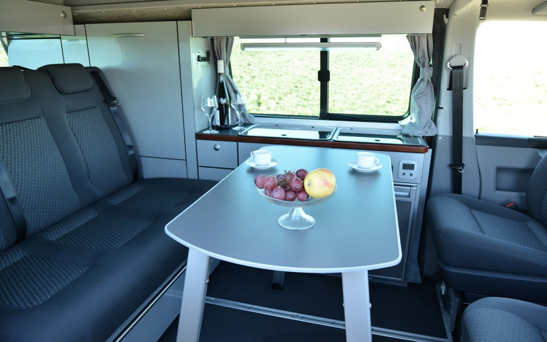 Unser WSR Plus+ auf Basis des T7 California Beach verbindet die Möglichkeit von 6 vollwertigen Sitzblätzen im T7 mit einer simplen Camper Ausstattung mit viel Stauraum.