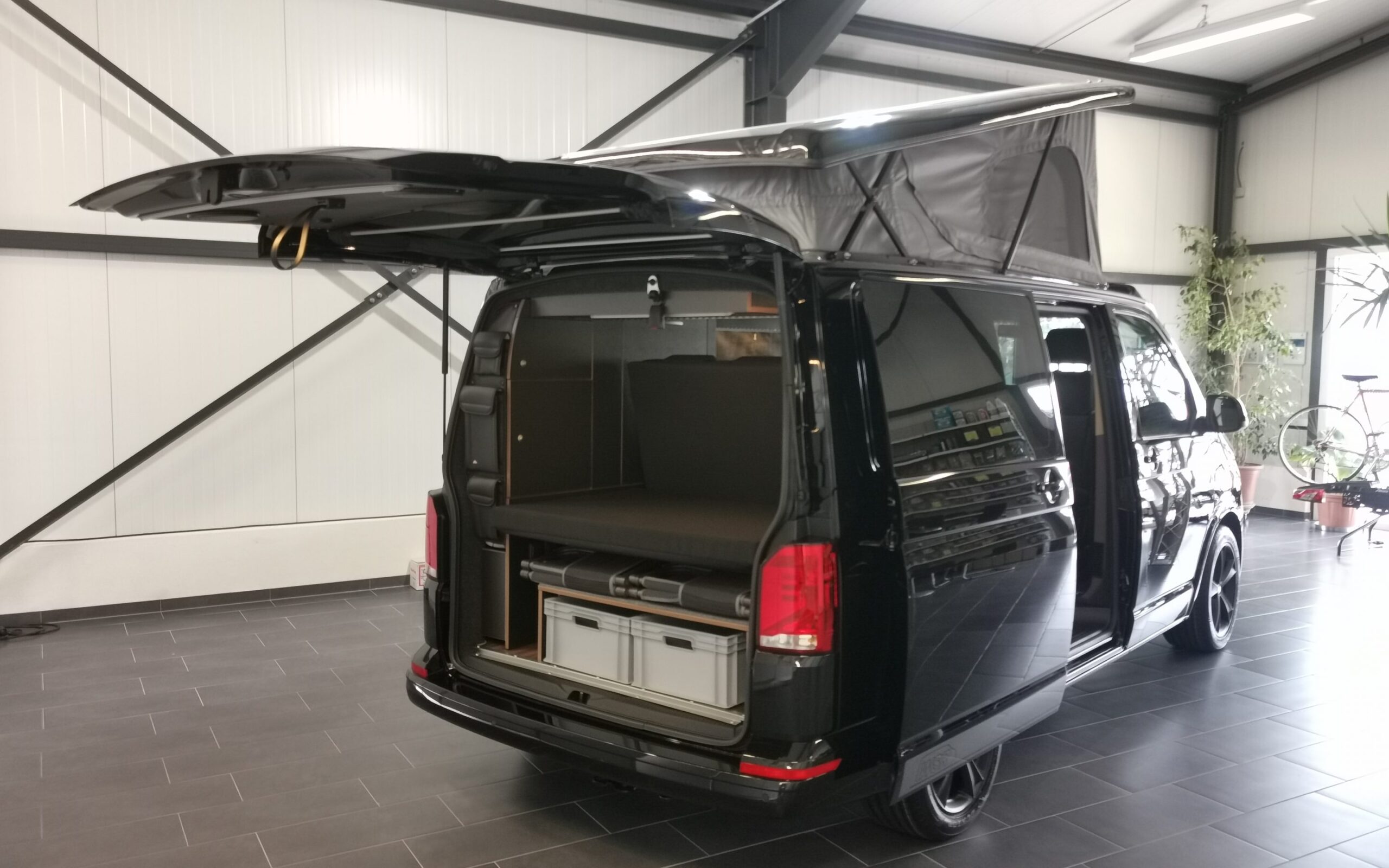 Vom Innenausbau, über Sitzschienen Montage, bis zur Aufstelldach Montage – wir bauen auch angelieferte Fahrzeuge vom Typ Volkswagen T5, T6 und T6.1 auf Wunsch gerne für Sie um.