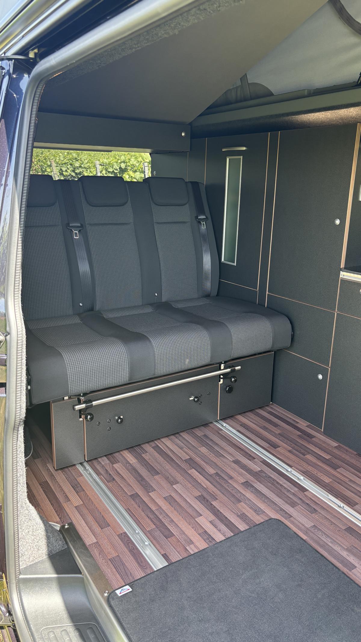 Schienensystem und Schlafsitzbank vom Fachbetrieb inkl. TÜV Eintragung mit drei voll zugelassenen Sitzplätzen