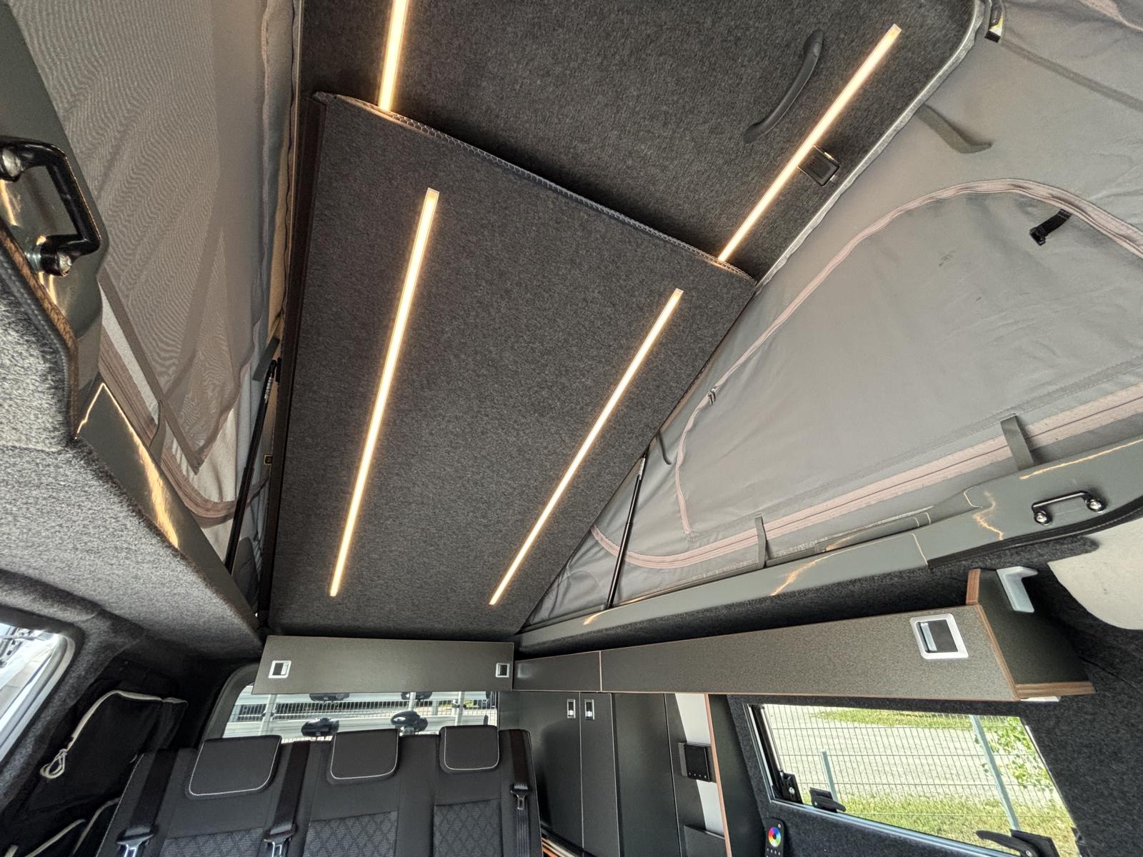 Das hochwertige Aufstelldach bietet ein komfortables Bettsystem mit Federtellern, das besten Schlafkomfort bietet – ideal für lange Reisen oder spontane Wochenendausflüge.