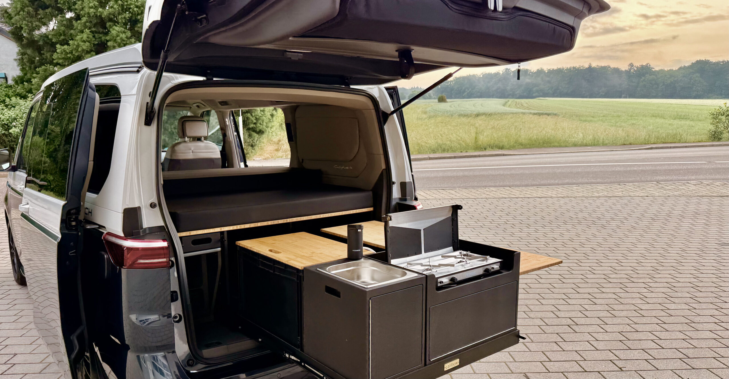 Dank smartem Calibox Ausbau entstehen auf Basis des T7 Multivan California ein wirklich alltagstauglich nutzbares Reisemobil.